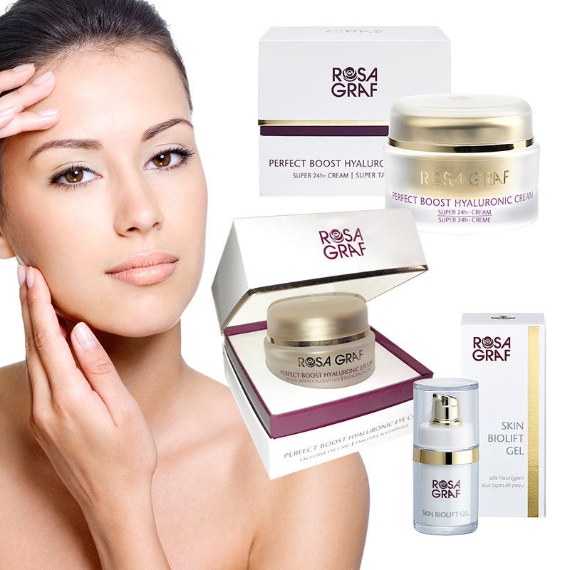 Previously, stabilised hyaluronic acid had only been injected into the skin by dermatologists and facial surgeons. But because it has the same properties when applied to the skin surface as when injected, ROSA GRAF has developed a new 24-hour anti-aging formula with triple hyaluron.