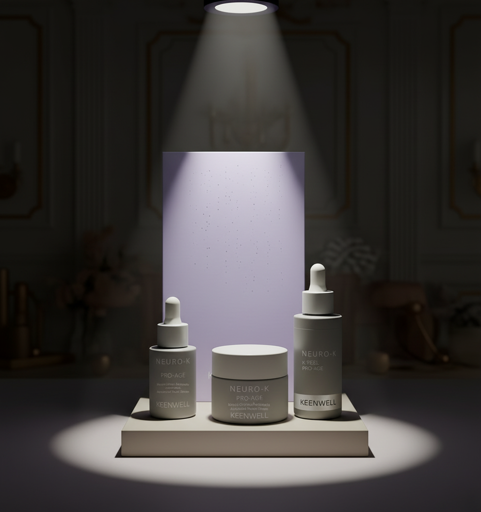 This comprehensive three-step K-PEEL PRO-AGE system offers a complete anti-aging regimen that effectively combats wrinkles, loss of elasticity, and other signs of aging through a synergistic approach: it begins with a gentle chemical peel to exfoliate and renew the skin's surface, followed by a neurocosmetic serum that relaxes expression lines and boosts collagen, and finishes with a nourishing cream that reinforces firmness and hydration—resulting in visibly smoother, plumper, and more radiant skin with professional-level results achievable in a skin-friendly home routine.
