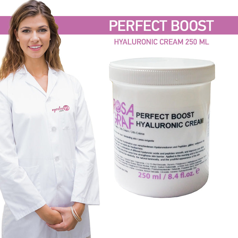 The exclusive PERFECT BOOST HYALURONIC CREAM is the only cosmetic alternative to a plastic surgeon!